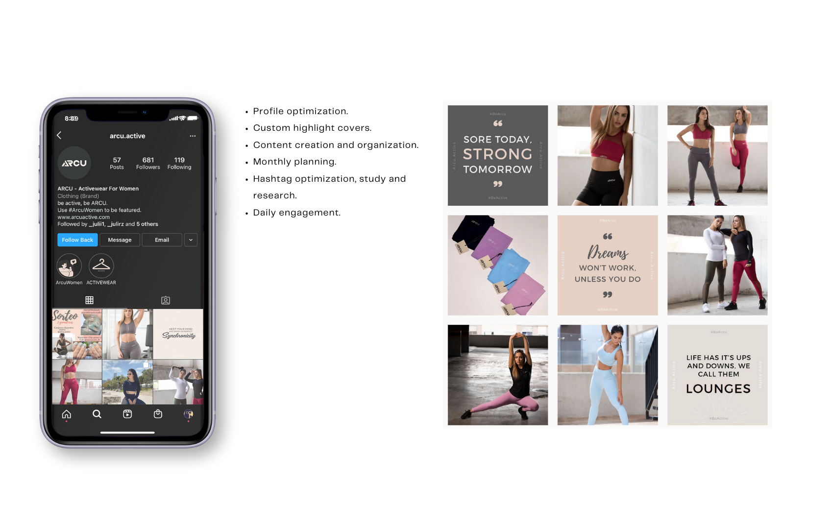 Improved profile description and graphics that align with the brand. Hashtag study for better performance and monthly posting planning to complement the product photography available. Custom highlight covers for stories and shareable graphic posts to boost engagement of the community.