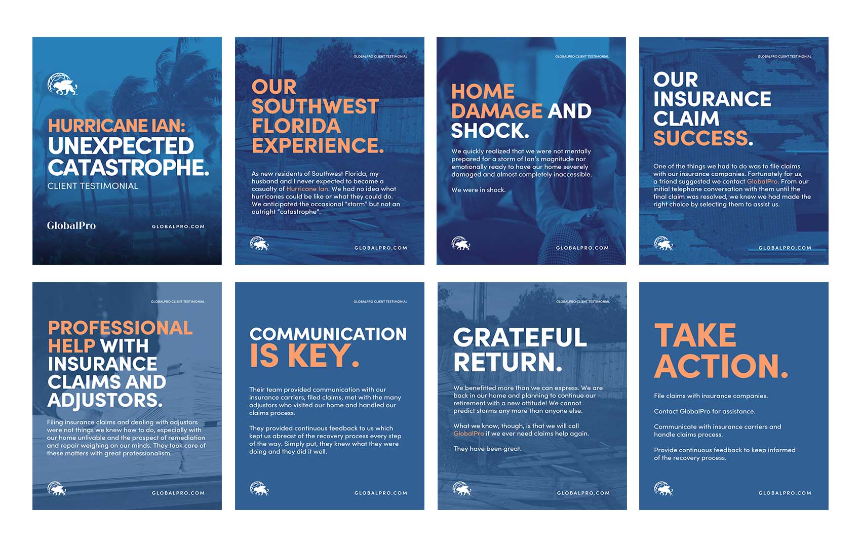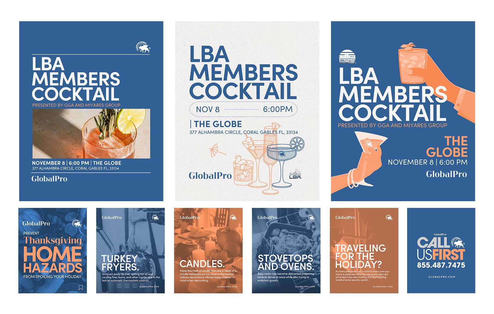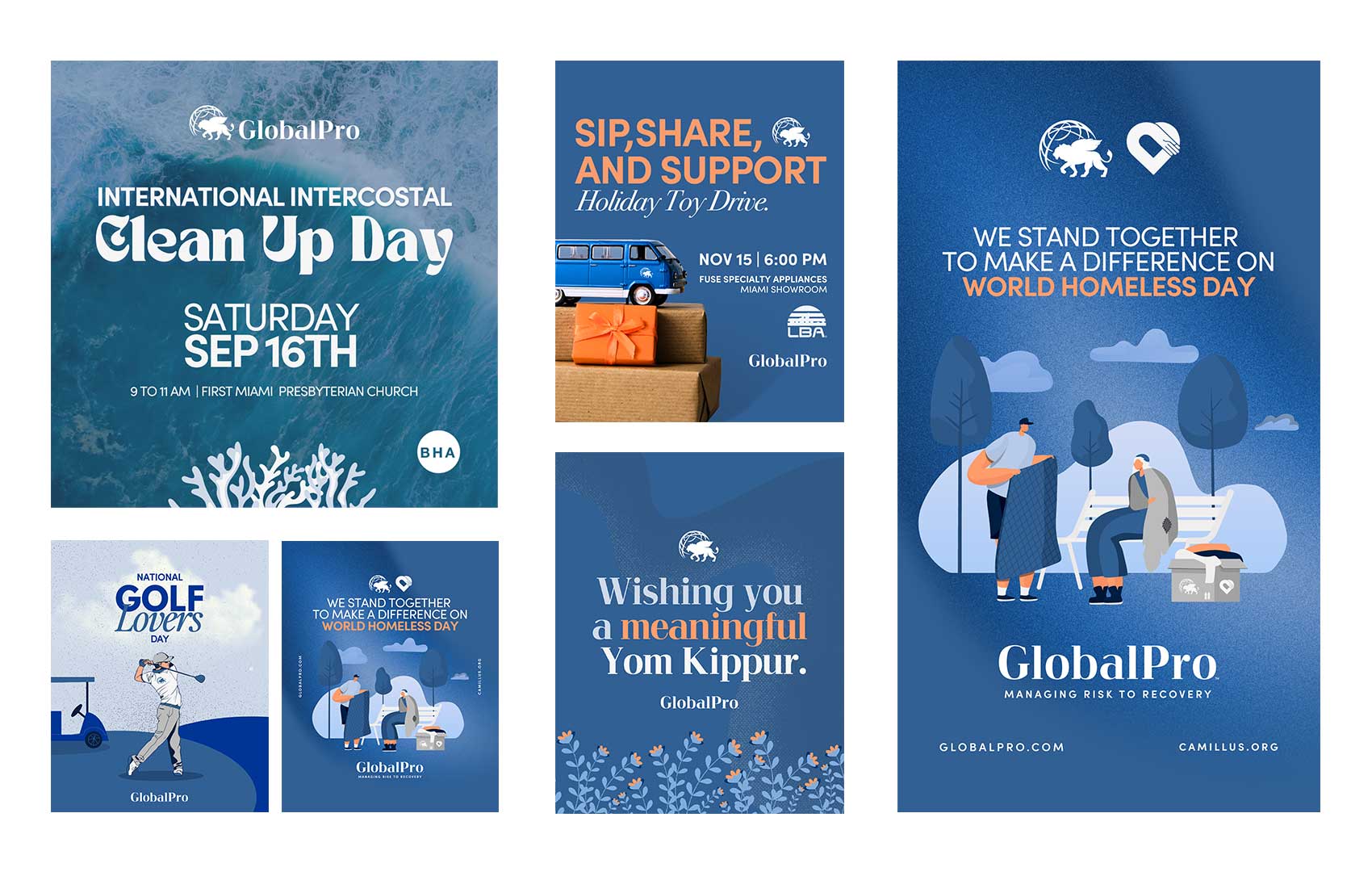 The content designed for GlobalPro centers on social media graphics tailored for multiple platforms. The content supported campaigns, company updates, and brand storytelling, ensuring consistency across the brand’s online presence while engaging a broad professional audience.