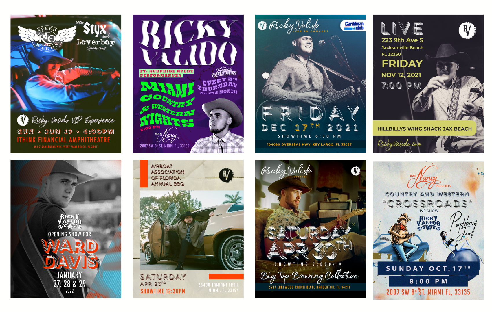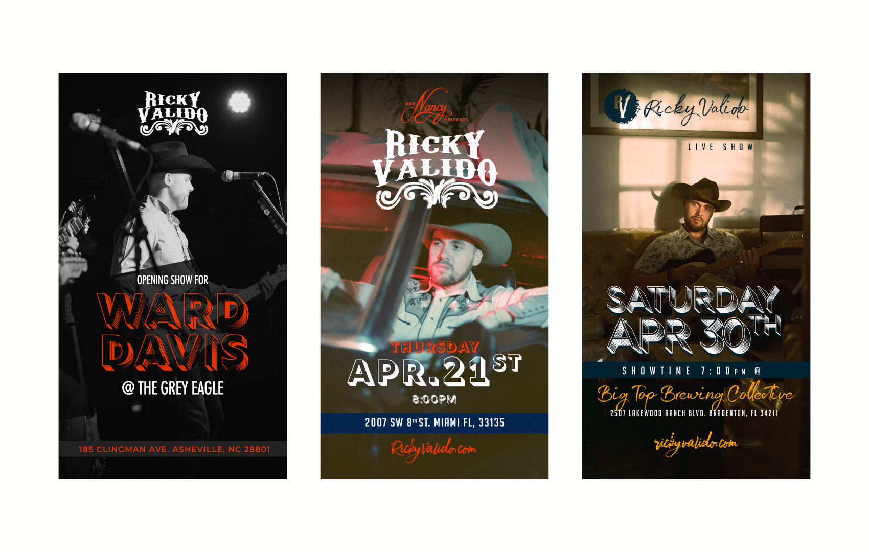 The content designed for Ricky Valido focuses on a variety of graphics and imagery for different social media platforms to promote his shows, upcoming music releases and any news about his music career, to strengthen his fanbase and community.
